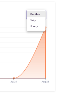 You can change the granuality by clicking on drop-down in top right corner. We can choose between Hourly/ Daily/ Monthly.